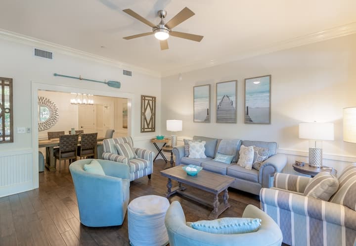 Искусете го најдоброто од WaterColor во овој прекрасен стан на првиот кат со поглед кон паркот Серулеан. На само неколку чекори од клубот на плажа и крајбрежјето, овој аголен објект има две спални соби со брачен кревет (широк 180 – 220 см), катче со кревет на спрат и покриена веранда за опуштено јадење. Уживајте во пристапот до базените на одморалиштето, тенисот, јадењето и заливот – сè на пешачко растојание. Совршено за семејства или парови кои бараат удобност, практичност и крајбрежен шарм во срцето на 30А.