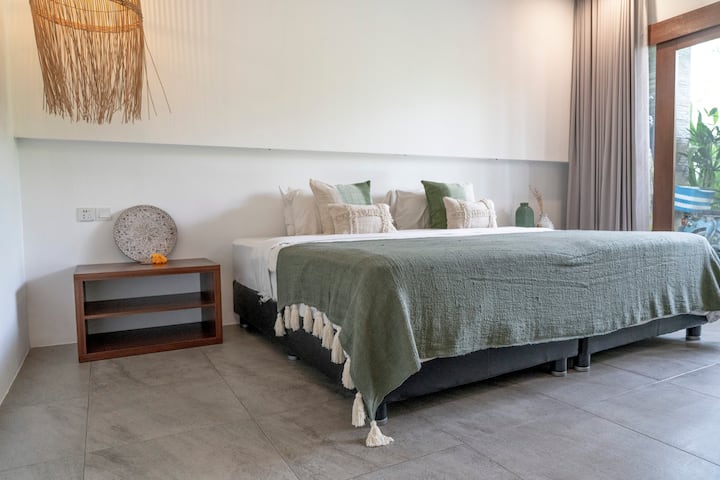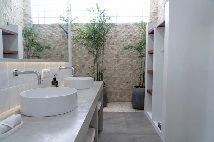 Ги дизајниравме нашите соби со патници кои доаѓаат на парови и имаат две бироа, две гардероби и два мијалника во секоја спална соба. Нашите брачни кревети се одлични за парови и може да се поделат на два кревета за оние кои патуваат како пријатели. Вашиот надворешен туш за дожд има топла вода и е опкружен со бујни, тропски растенија. Сите соби имаат USB кабли на бироата и кревет за полнење, како и телевизори опремени со Netflix (забелешка, телевизорите не се поврзани со телевизиските станици и се обезбедени за пренос од вашиот лаптоп или телефон).