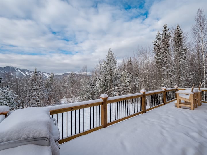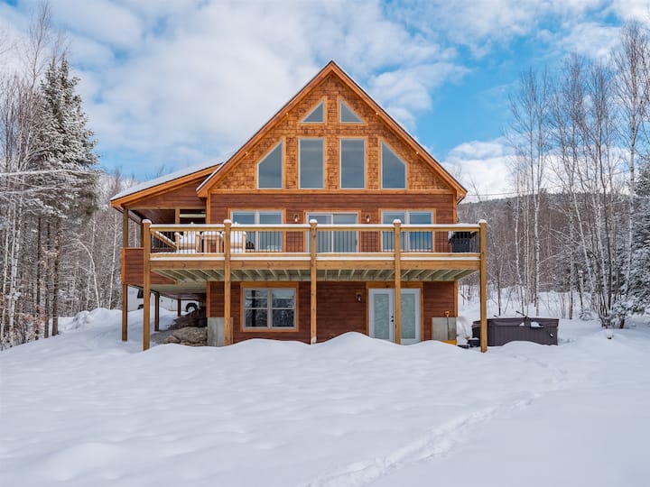 Планинска куќа во The Peaks со хидромасажна када и патека