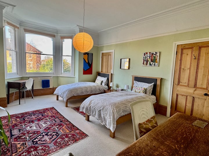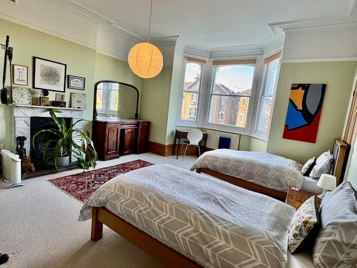 Светла соба со брачен кревет во викторијанска куќа /зона 2
