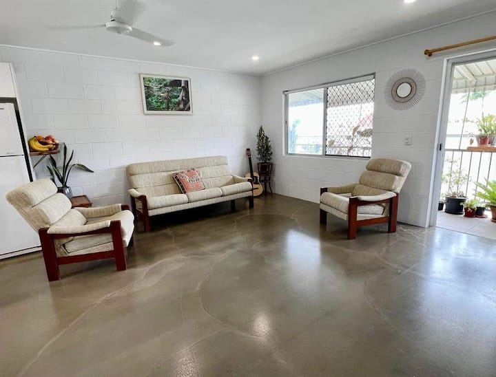 Sunny and tranquil beach apartment on leafy street