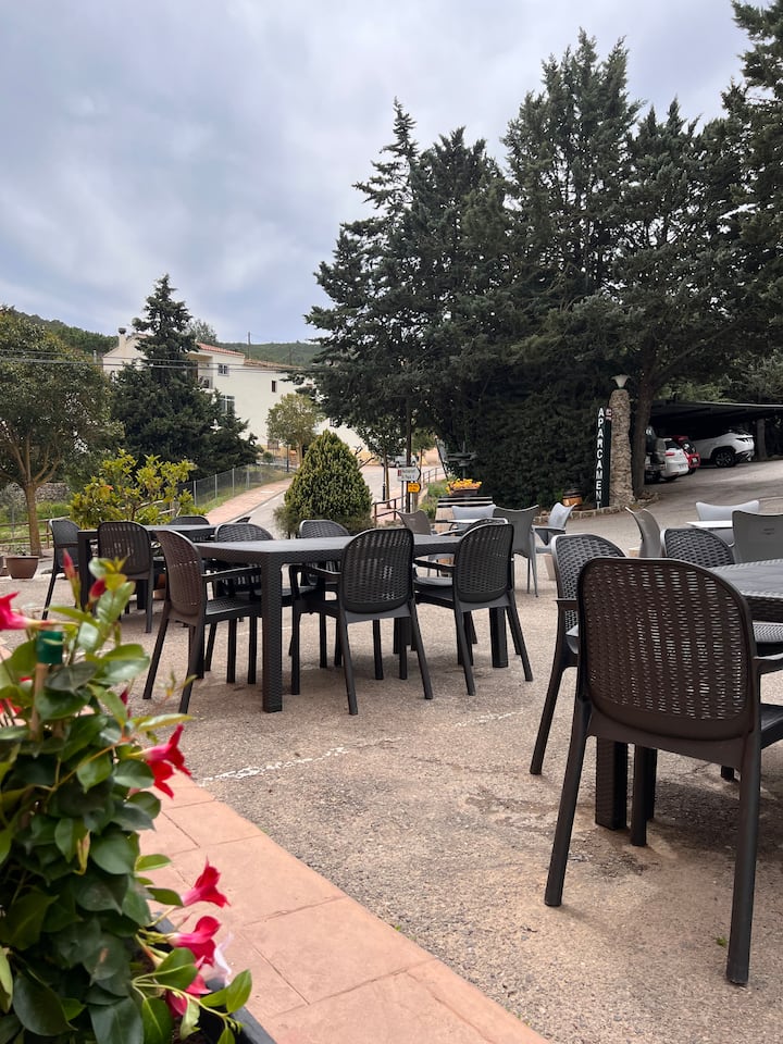 - Сместувања за изнајмување со простор за седење на отворено за одмор во Alt Penedès