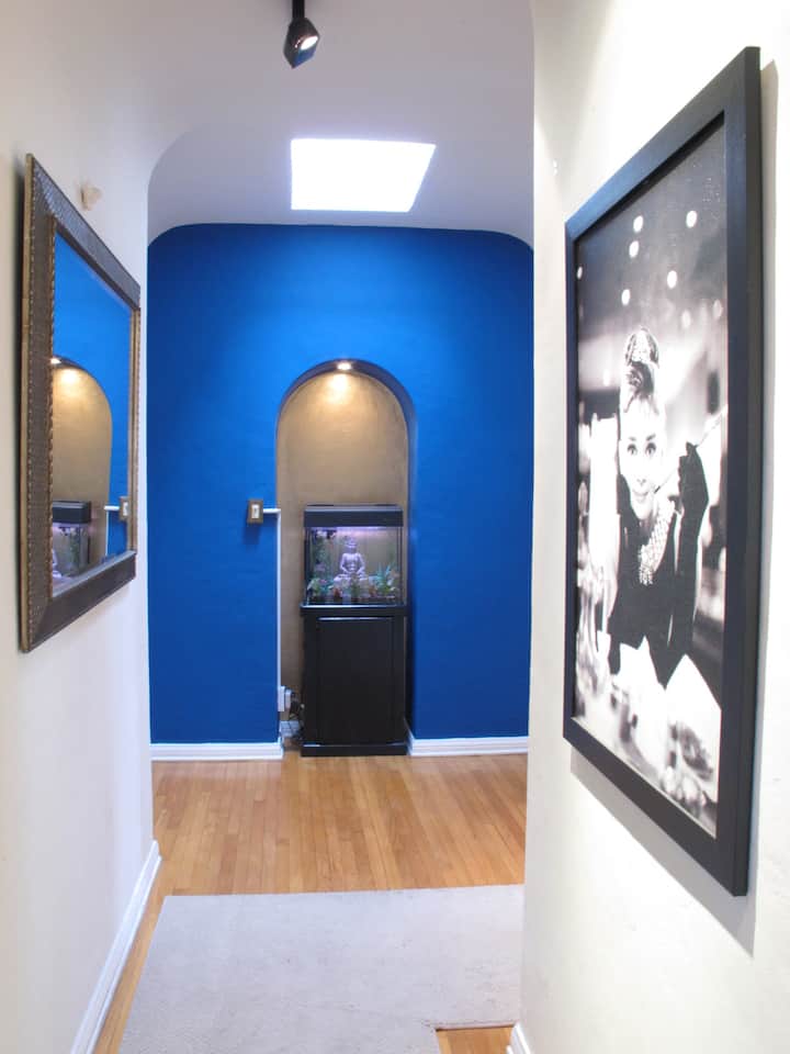 Здраво, јас сум Натали. Мојата сопруга Еди и јас делиме прекрасен дуплекс во шпански стил од 2000 квадратни стапки во срцето на Лос Анџелес, каде што издаваме две соби. Лежерни сме, опуштени и ги одржуваме работите чисти и удобни. Гостите имаат доволно приватност, но со задоволство разговараме. Можеби ќе ги запознаете нашите мачки — Фини (друштвена), Вилоу (истражувач на отворено) и Џет (нашата срамежлива девојка). Мирно, гостопримливо место за опуштање и уживање во Лос Анџелес.