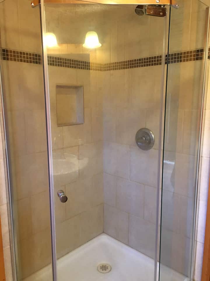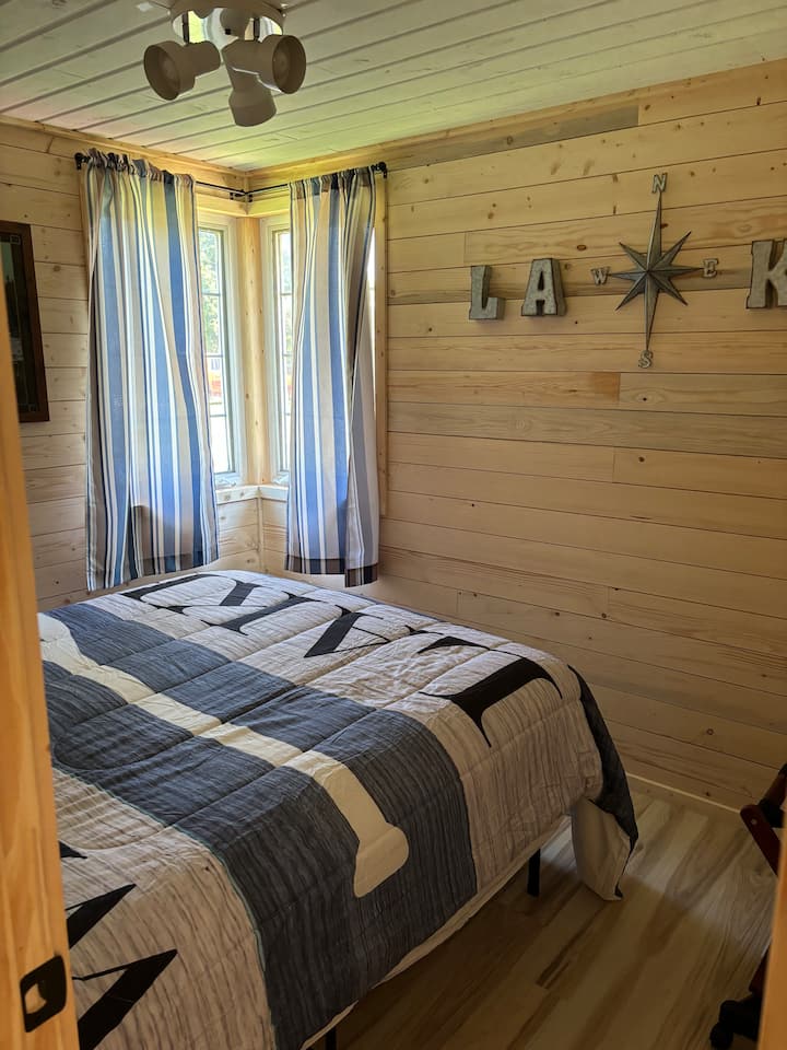 Дрвена колиба со 2 спални соби со поглед на езеро на 50 стапки од плажа