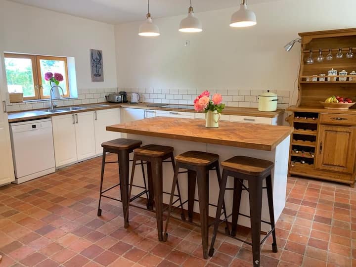 Ние сме петчлено семејство. Том и јас сме наставници во основно училиште. Во нашите празници со љубов ја реновиравме нашата прекрасна француска куќа на фарма создавајќи совршен простор за нашето семејство да создаде многу магични спомени. Веруваме во поминување време заедно со пријателите и семејството, престој на отворено и поминување многу време во подготвување вкусни оброци! Сите сакаме да пливаме во морето и да скокаме од песочните дини.