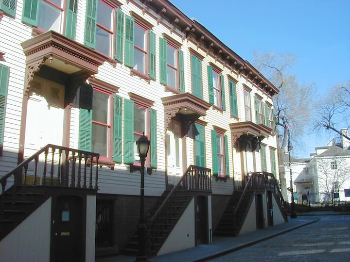 Ние сме пар кој сака да патува. Поседуваме ноќевање со појадок во Њујорк каде што угостуваме гости од целиот свет. Мајкл е партнер во агенција за односи со јавноста специјализирана за храна, вино и алкохолни пијалаци. Тој е тркач и зборува течно јапонски јазик за кој дознал за време на неговите 10 години живот во Јапонија. Александра е полска и е професионалец за стил на храна и маркетинг. Зборува полски, англиски и француски јазик. Се надеваме дека ќе се видиме наскоро - во вашата куќа или во нашата!