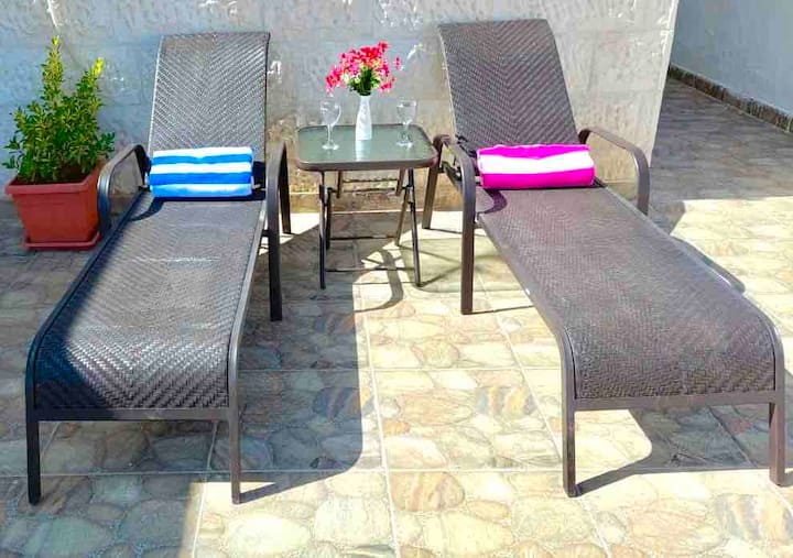 - Сместувања за изнајмување со простор за седење на отворено за одмор во Аман