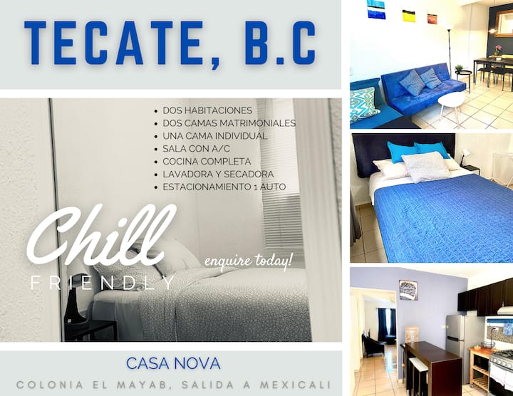 Целосно автономен пристап (самопријавување). За дополнителен трошок, некој може да почека да ве пречека во куќата. Се наоѓа на 1-ви кат од стан со паркинг во внатрешноста на имотот за 1 автомобил. Неколку минути од граничната линија, автопатот Мексикали-Тиџ.Индустрискиот парк Tecate и главните авении.
