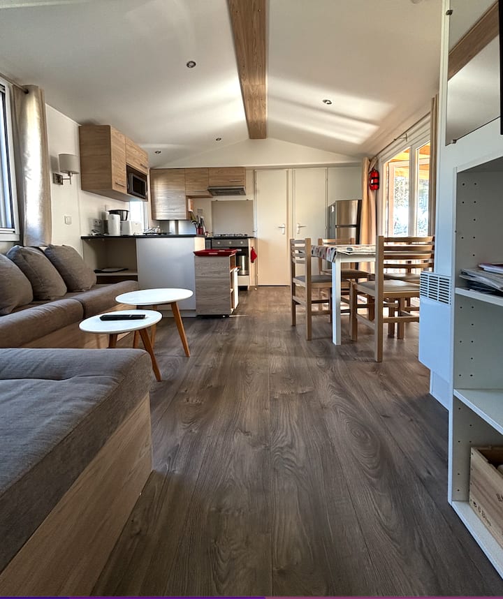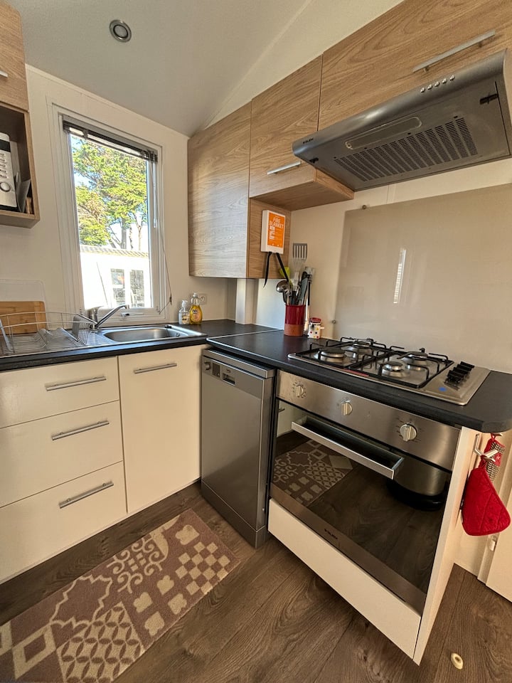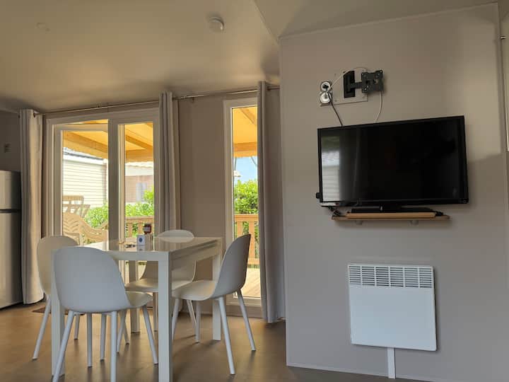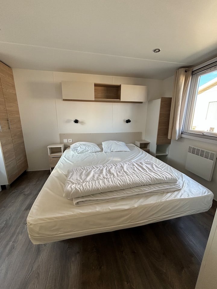 Мобилна куќа со 2 спални соби во камп покрај морето во Киберон
