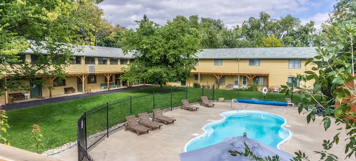 Преспијте во шармантни, рустикални сместувања во зграда во која може да се сместат 102 лица на работно ранчо од 148 хектари. Прошетајте по патеките за пешачење, посетете го Националниот парк Роки Маунтин во близина на Естес Парк или разгледајте ги локалните активности во Лавленд и Форт Колинс.
