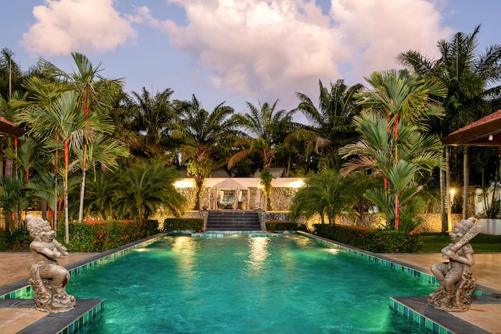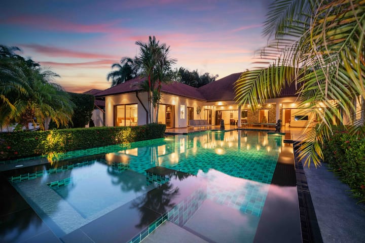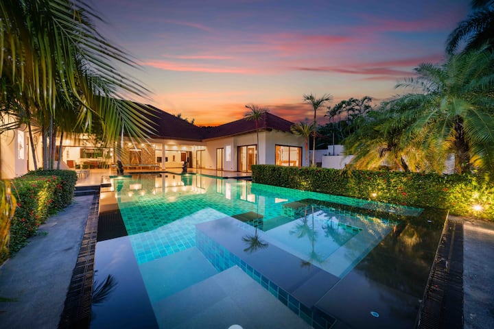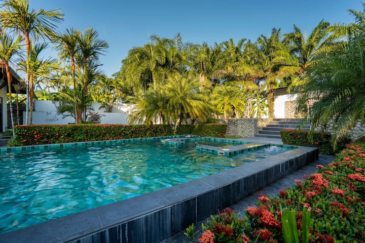 Уживајте во престојот во оваа вила која го одзема здивот 1850MANSION во срцето на деловниот округ Раваи во прекрасниот Пукет, Тајланд! Оваа луксузна вила од 1850 квадратни метри се наоѓа во тивка заедница, опкружена со бујно зеленило и освежителна дождовна шума.