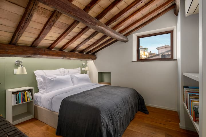 Јас сум Џакомо, роден и израснат во Рим. Живеам во странство повеќе од десет години, но секогаш давав сѐ од себе за да се вратам на тесните улици на Рим што е можно почесто. Одлучив да го купам и прецизно да го вратам овој мал дом скриен меѓу покривите на Трастевере за да создадам посебно место за мене и моите гости да уживаме во вечниот град.