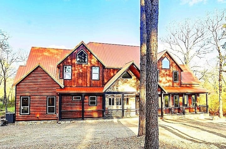 Кој не би сакал да се излежува во голем луксузен дом целосно опремен со две огромни хидромасажни кади, огромна соба за игри, неверојатни спални соби и сензационални удобности на отворено? Оваа шумска резиденција од 3 хектари, една од најголемите во регионот, долж мирна река има сѐ и се наоѓа на одлична локација спроти живописно рибарско езерце. Опфаќајќи неверојатни 7 400 квадратни стапки, оваа нова дрвена колиба е навистина спектакуларна со 7 спални соби и 7,5 бањи за да спијат вкупно 29 гости, плус станица за полнење електрични автомобили!