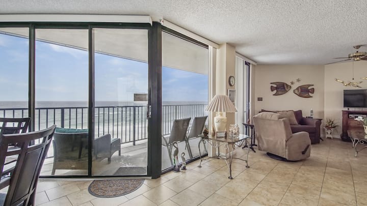 КОНДОМИНИУМ НА ПЛАЖА СО ДИРЕКТЕН НЕПРЕЧЕН ПОГЛЕД на заливот. Овој кондоминиум на брегот се наоѓа директно на шеќерно белите песоци на Панама Сити Бич. Заедно со прекрасниот поглед кон плажата, уште една предност на престојот во Аквависта е што има само две осумкатни кули, што овозможува помалку гужва на плажа.