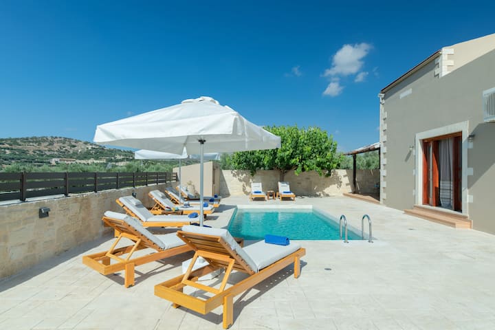 Блажено поставен на критската провинција, еве дом каде што саканите можат да се сместат бесплатно. Суровата убавина на домот зазема префинета, елегантна улога; скромно прекрасна и лежерно величествена, што го прави идеален семеен одмор или омилени пријатели за летните одмори со години.