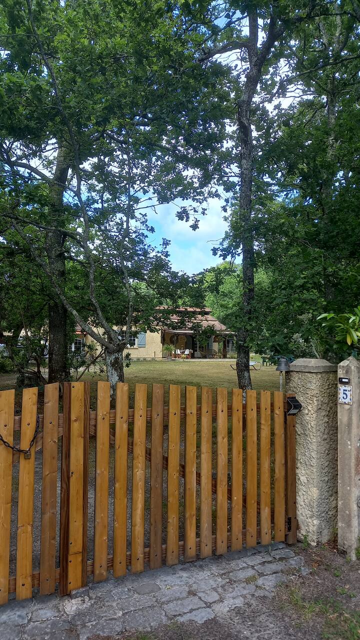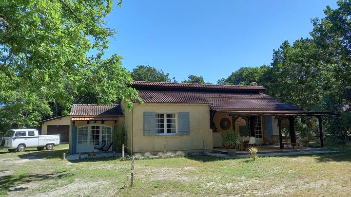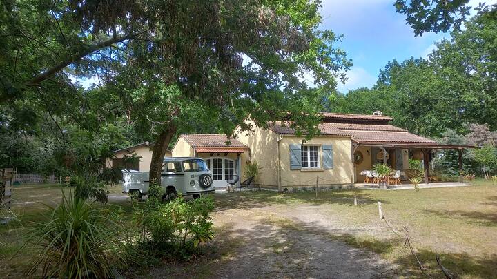 Селска куќа, шумска градина, во близина на океанот.