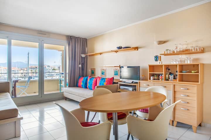 Предностите на сместувањето што го изнајмувате: стан со опремена тераса, свртен кон исток, кој нуди многу убав поглед на пристаништето. Пристап до заедничкиот базен на живеалиштето.