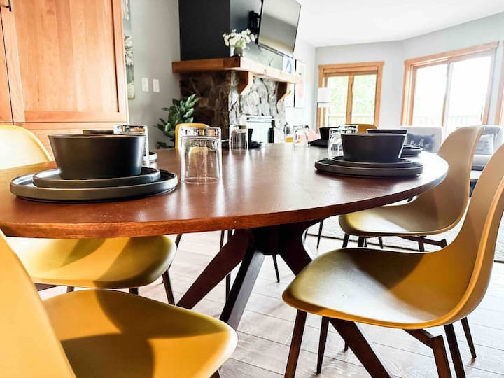 Преголемиот простор за живеење, трпезаријата и кујната ќе одговараат на целото ваше семејство, а потоа и на некои од нив. Опуштете се пред каминот или играјте игри на табла цела ноќ на трпезариската маса за повеќе од 6 лица. Нашиот кондоминиум е поголем од повеќето 2 спални соби во Кистоун, со дополнителен простор за седење и лесно достапен кревет „Марфи“. Во кујната има многу направи за приготвување одличен оброк или доволно чинии и чаши за носење со стил.