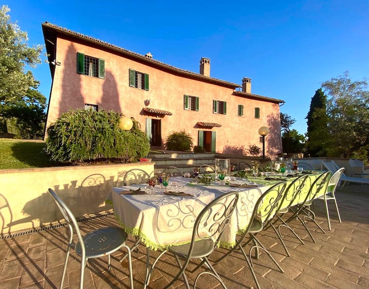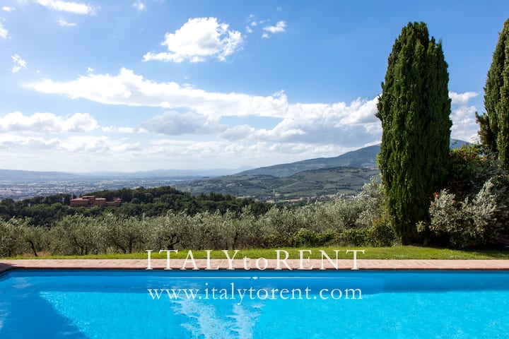 Идеално за семејни собири и настани. Елегантна вила со гостинска куќа, на 15 минути возење до Асизи, во поранешен средновековен манастир опкружен со сребрени маслинови насади на врвот на ридот. Секојдневна услуга за чистење (се плаќа покрај цената за изнајмување). Командна и живописна локација, целосна приватност со намирници и бар на само 1 км (пеш). Идеално место за одмор со семејството во срцето на Умбрија, во длабок контакт со природата и историјата. WIFI интернет.