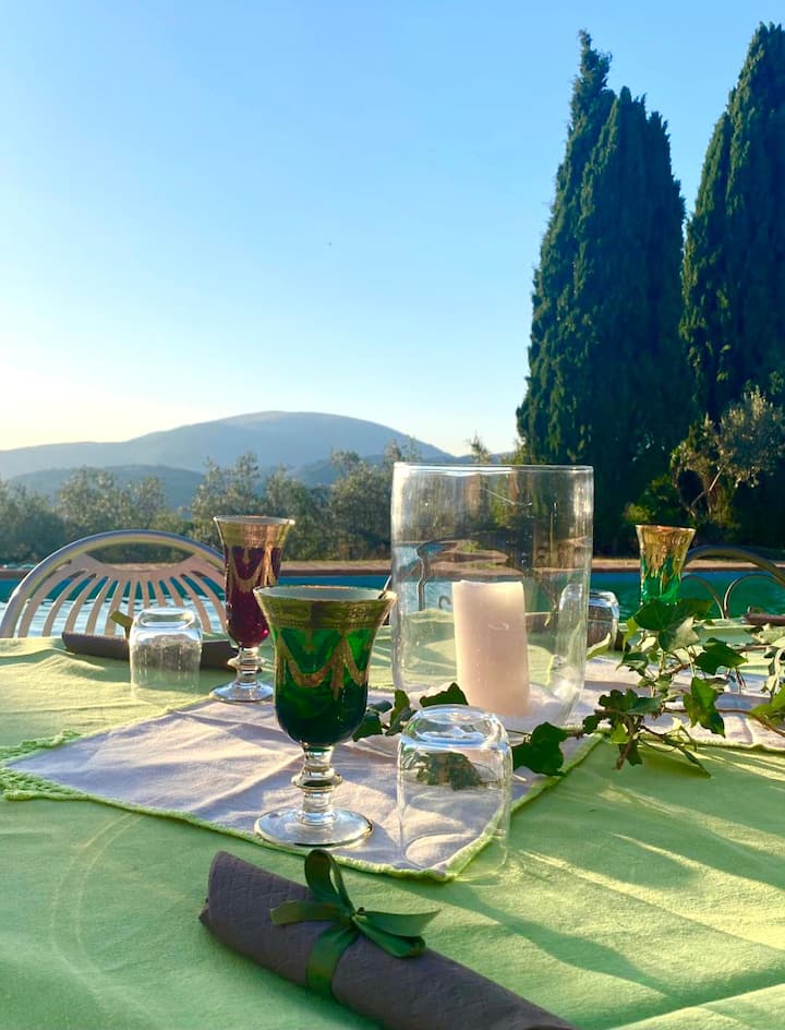 Вилата, некогашен средновековен манастир, е прекрасно претворена во шармантна селска резиденција со базен, опкружена со сребрени маслинови дрвја на врвот на живописен рид.
