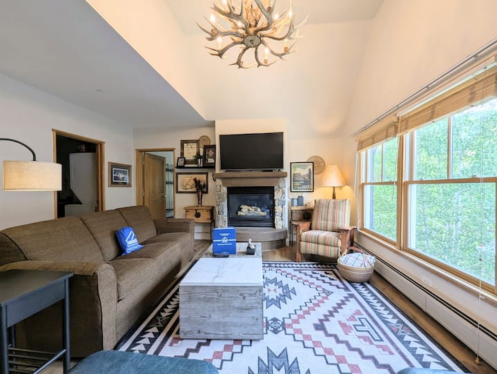 На вашата група ќе им се допаднат сводестите тавани и прекрасниот поглед кон планината и селото. Со две пространи спални соби, елегантен декор и пристап до заеднички базен и хидромасажна када, овој имот на Кистоун е редок скапоцен камен! Фестивалите, концертите, центарот за уметност и настани на станицата Ворен, продавниците и рестораните се во непосредна близина. Дозволете SummitCove да се погрижи за вашите потреби за сместување во Keystone и резервирајте го овој кондоминиум денес.