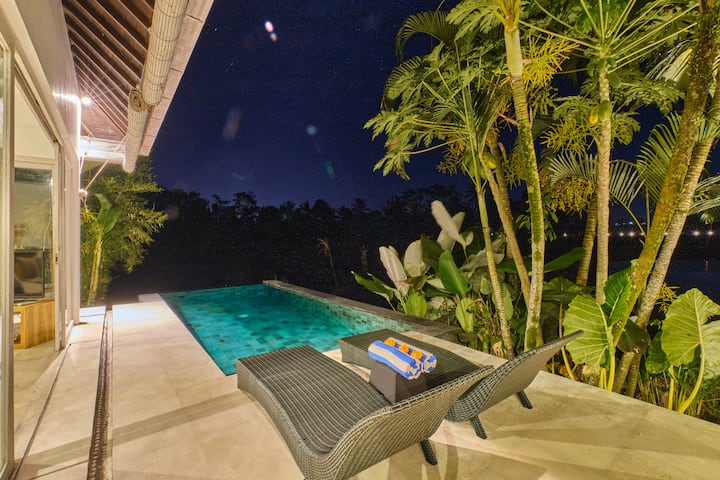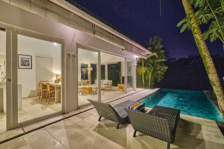Нашата вила со 2 спални соби ја спојува медитеранската елеганција со природните балиски детали, создавајќи топол и привлечен амбиент. Сместена во мирно село на само 15 минути од центарот на Убуд, оваа вила нуди совршена комбинација на изолација и пристапност. Вашето совршено утро ве чека со бесплатно кафе, чај и шеќер во вилата.