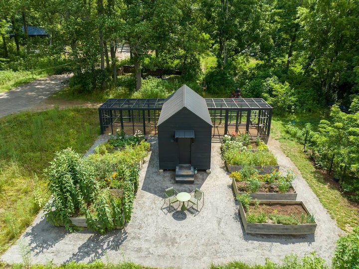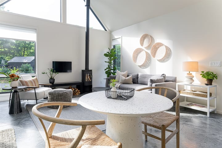 Добре дојдовте во нашите модерни колиби во Ешвил, Северна Каролина! Ние сме Ејми и Шари (Спенсер е сопругот на Шари), две долгогодишни пријателки кои ја претворија заедничката визија во луксузно прибежиште потопено во природната убавина на планините Блу Риџ.