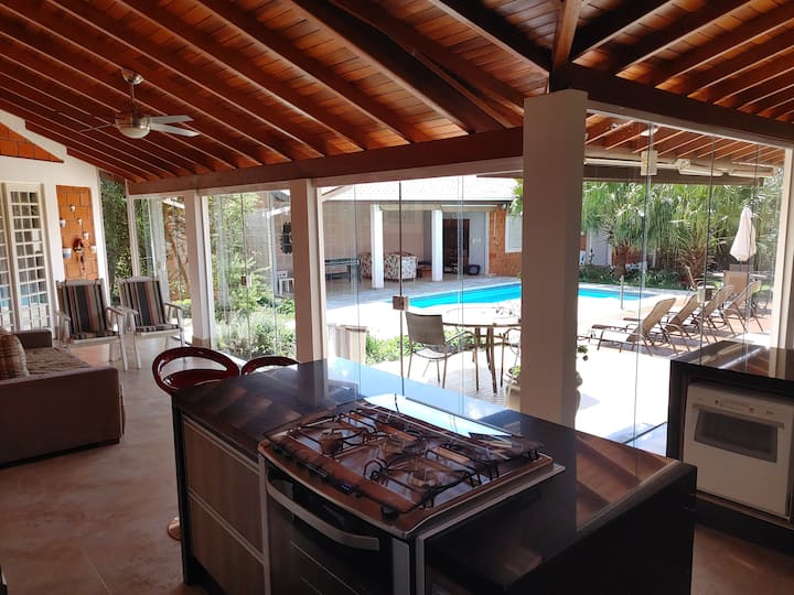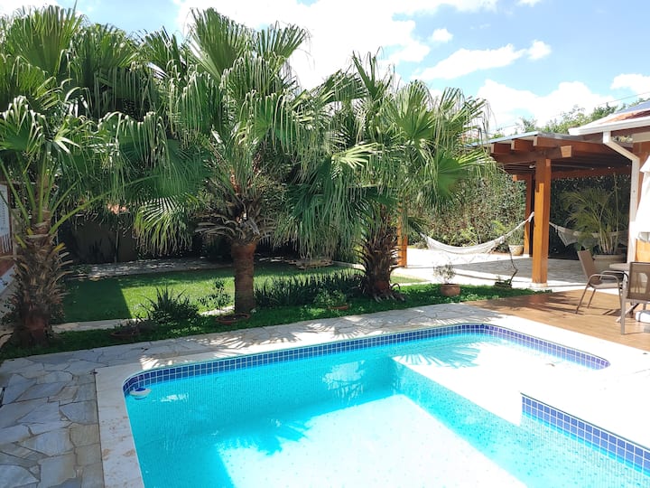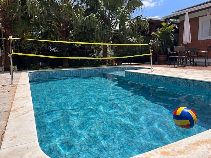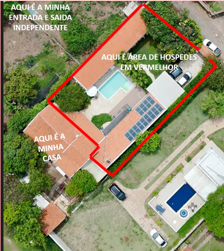Ексклузивно прибежиште среде зеленилото на Индајатуба, со базен, скара и целосен гурмански простор, игри и многу удобност. Идеално за семејни групи. Тоа е гостинска куќа интегрирана со базенот прикачен на главната куќа каде што живеат сопствениците; сепак, просторите се независни и приватни и не се делат помеѓу сопствениците и гостите, како и пристапот до влезот и излезот. Резервации од 4 до 10 лица. Погодно за миленици! Карневал 2026 Контактирајте нѐ
