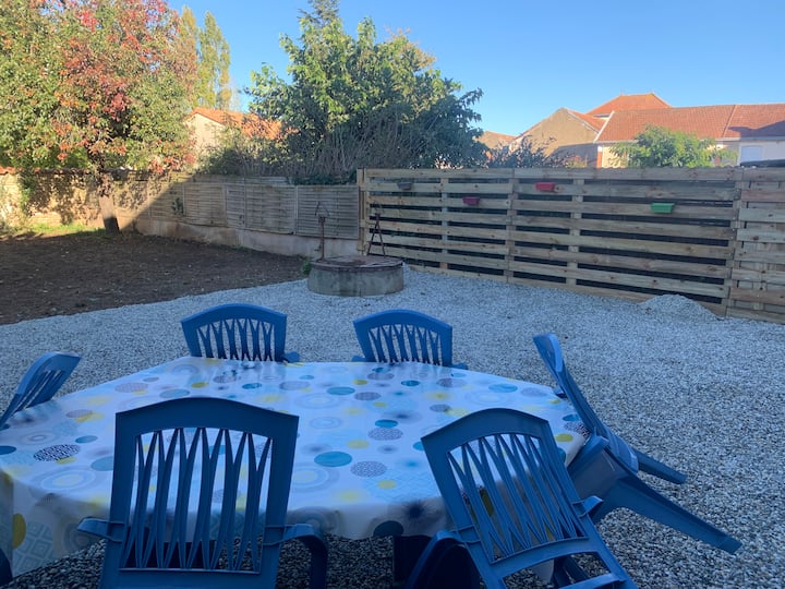 - Сместувања за изнајмување со простор за седење на отворено за одмор во Vendée