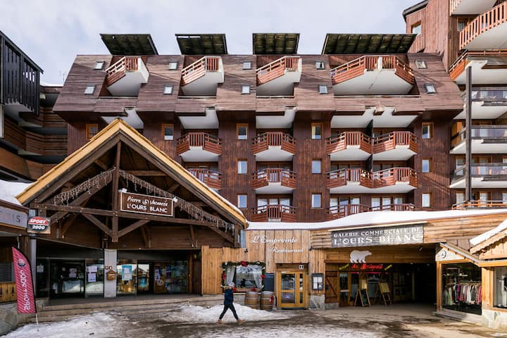 Сместена во регионот Оверњ-Рон-Алпи, во департманот Изер, резиденцијата „Белата мечка“ се наоѓа во срцето на станицата Alpe d'Huez. Во совршена хармонија со планинскиот пејзаж, резиденцијата има традиционална архитектура со некои точки на модерност.