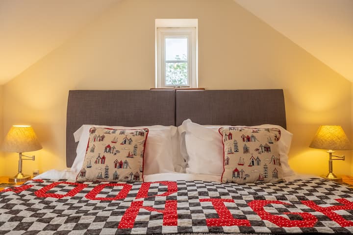 Внатре е исто толку привлечно, со пространа кујна/ трпезарија со француски врати кои водат до градината и дополнителна комунална соба покрај кујната; лесна и пространа дневна соба со засводен таван и одделни скали кои водат до двете спални соби на првиот кат; и корисна спална соба и бања на приземје со Bluetooth огледало, за да можете да ја слушате омилената музика додека уживате во релаксирачко впивање. На горниот кат, главната спална соба има сопствена туш-кабина, додека втората спална соба на првиот кат има удобен кревет со големина на крал, кој може да се претвори во два луксузни единечни на барање. Со сите кревети со хотелски квалитетни 2000 џебни душеци и обезбедени наметки и влечки, сигурно ќе се чувствувате како да се одморите и да се опуштите.
