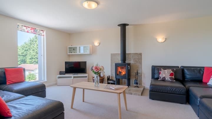 Оваа куќа за одмор со обратно живеење има две двокреветни соби и семејна бања на приземјето, како и корисна комунална соба. На првиот кат се наоѓа кујната-трпезаријата - со пристап до покриениот балкон преку француските прозорци - дневна соба со шпорет на дрва и две пространи двокреветни соби (секоја може да биде составена како двокреветна или двокреветна соба). Сите соби имаат прозорци од подот до таванот, што го прави ова светло и светло место за одмор со прекрасен поглед од секоја соба. Флексибилноста на спалната соба, просторот и модерните погодности го прават ова одлично место за шетачи, пошироко семејство, свадбена група или дружење на пријателите.