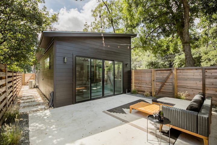 - Сместувања за изнајмување со простор за седење на отворено за одмор во Austin