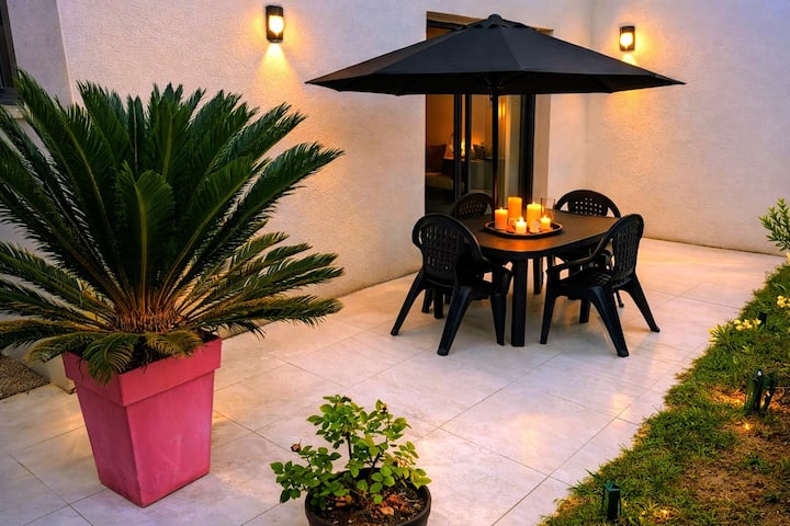 Плажата е на пешачко растојание, Т2 од 35 м2 со приватна градина