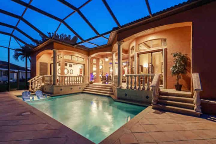 Помалку од 15 милји до плажата Форт Мајерс, 20 милји до островот Санибел, помалку од еден час до Неапол и на неколку часа од Орландо, Мајами и Тампа ја прави оваа локација на куќата идеална. Додека уживате во појадокот наутро или на зајдисонце навечер, можете да се опуштите на пространиот веранда со поглед на базенот и езерото со делфини и морски крави кои пливаат за ваша забава.