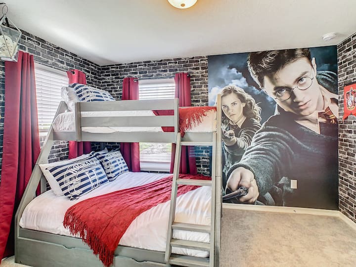 Спална соба 3 (тема за Хари Потер): 1 кревет на спрат: двоен кревет (долен) и единечен кревет (горе) - 40-инчен паметен телевизор. (Приватна бања)