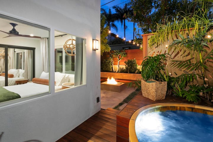 Sunset House е еднофамилијарен дом кој ја зафаќа целата задна половина од двојното место, нудејќи изолирано чувство со својот приватен, ограден двор. На приземјето се отвора бујна градина, во која има хидромасажна када од кедар за шест лица (со дијаметар од 6’и длабока 4’) и бетонска огниште на природен гас, создавајќи привлечен простор за вечерни собири под ѕвездите. Вториот кат се протега на огромна тераса со неверојатни океански глетки, совршени за пиење утринско кафе или коктели за зајдисонце. Внатре, обратниот план на катот го максимизира погледот, со централен клима уред за ретки жешки денови и мебел од висока класа за максимална удобност.