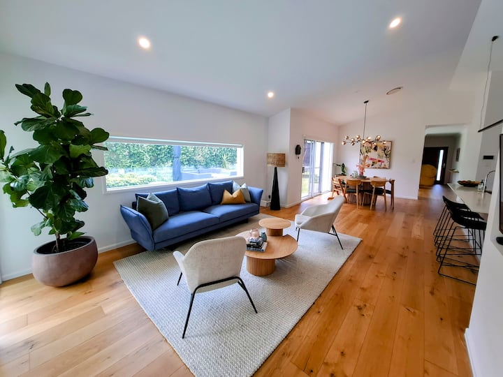 Добре дојдовте во совршеното место за одмор на плажа! Нашиот модерен семеен дом во Ленокс Хед нуди стилско и удобно место за одмор за вашиот следен одмор. Сместен на само 3 минути возење до плажата и на кратко 5-минутно пешачење до трговскиот центар Epiq, овој имот комбинира удобност со спокојство, што го прави идеална база за вашиот следен одмор!
