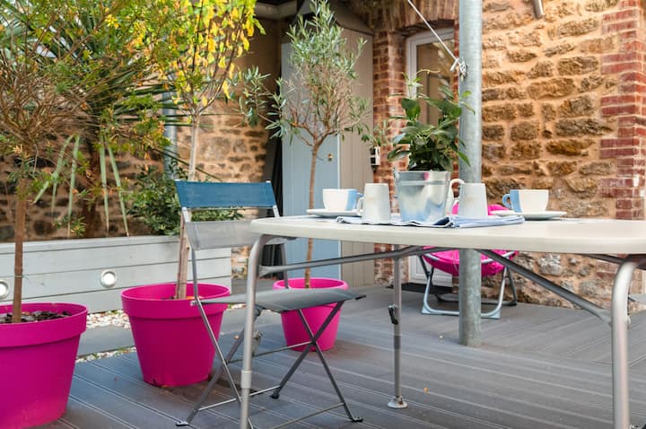 - Сместувања за изнајмување со простор за седење на отворено за одмор во Dinard