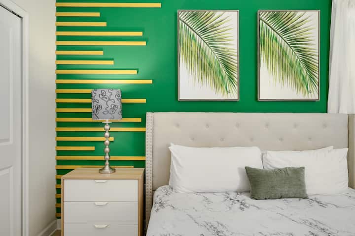 СПАЛНИ СОБИ: „Theme Park Vacation Homes“ ги дизајнира нашите имоти за да обезбеди најдобри сместувања за големи групи! Нашата мешавина од луксузен мебел во собите за возрасни, дневните и трпезариите, во комбинација со забавна тематска детска соба, го извлекува максимумот од аранжманите за спиење и живеење за групи кои ги содржат сите возрасти. Во овој дом може да се сместат 14 гости во 9 кревета . Паметните телевизори со рамен екран се наоѓаат во секоја спална соба за возрасни, што ви овозможува да се најавите на вашата омилена услуга за стриминг!