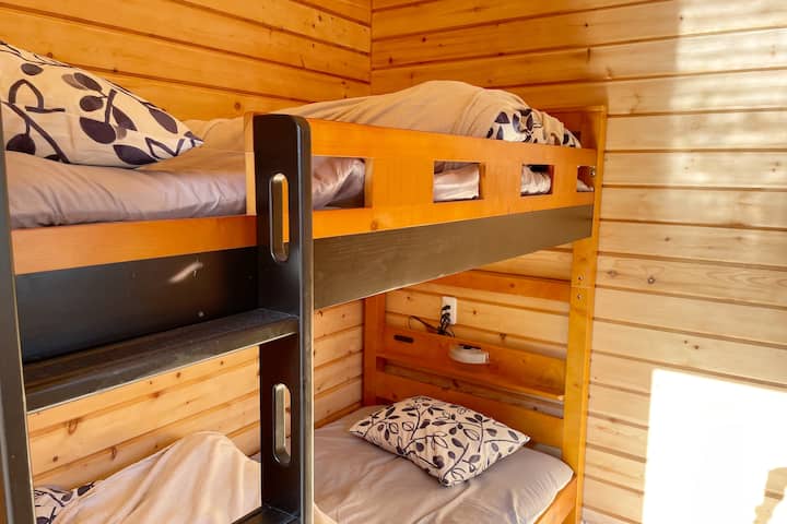 Покрај камповите што можете сами да ги поставите, имаме и куќи со трупци достапни за оние кои се загрижени за природата!