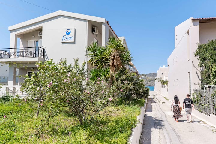Се викам Аристеа и заедно со мојот син, Манос, ви посакуваме добредојде во Rhoe Seaside Apartments. Автономни станови и студија, со сите удобности што ги изградивме со љубов за да пречекаме луѓе од целиот свет. Нашата цел е да им го понудиме на нашите гости најдобро сместување и да ги натераме да го искусат критското гостопримство по кое сме познати. Сите сте добредојдени и ќе ни биде задоволство да се запознаеме лично.