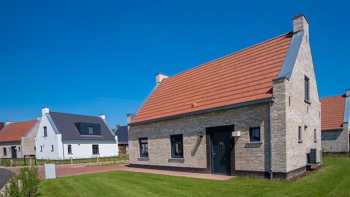 Оваа одвоена вила за одмор од околу 125 м2 има пространа, светла дневна соба, како и простор за седење и јадење и телевизор со Chromecast.
