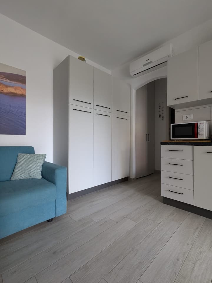 Нов двособен стан со тераса во близина на морето