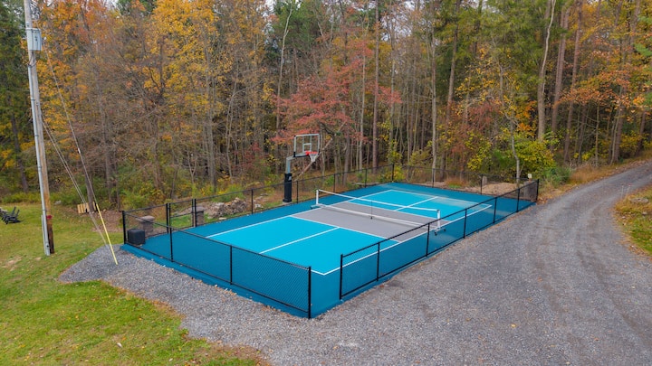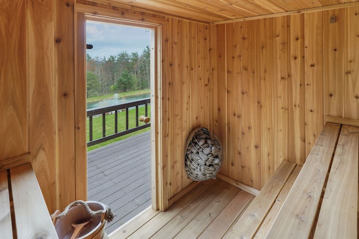 Добре дојдовте во Reflection Ridge! Бегајте во оваа неверојатна планинска колиба во близина на Лок Хејвен, Пенсилванија, каде што луксузот се среќава Сместено во мирен амбиент со приватно езерце, ова место за одмор нуди сѐ што ви е потребно за релаксација и авантура. Опуштете се во хидромасажната када, опуштете се во сауната која е лесна за користење, соберете ја групата на филмска вечер во театарската сала или усовршете ја лулашката со симулаторот за голф. Во игротеката има базен, шафлборд, бесконечна маса за игри и друго. Не заборавајте да поминете едно попладне веслајќи наоколу на вашето приватно езерце и да се соберете на бучен оган под ѕвездите. Или играјте ја играта на нашето ново спортско игралиште, без разлика дали се работи за туршија или кошеви! Нема да ви биде здодевно тука во Reflection Ridge! Изработена со сопствен мебел од трупци на Амиши, оваа дрвена колиба го спојува рустикалниот шарм со модерната удобност. Без разлика дали барате мирно прибежиште или место за одмор исполнето со активности, овој планински рај нуди сѐ!