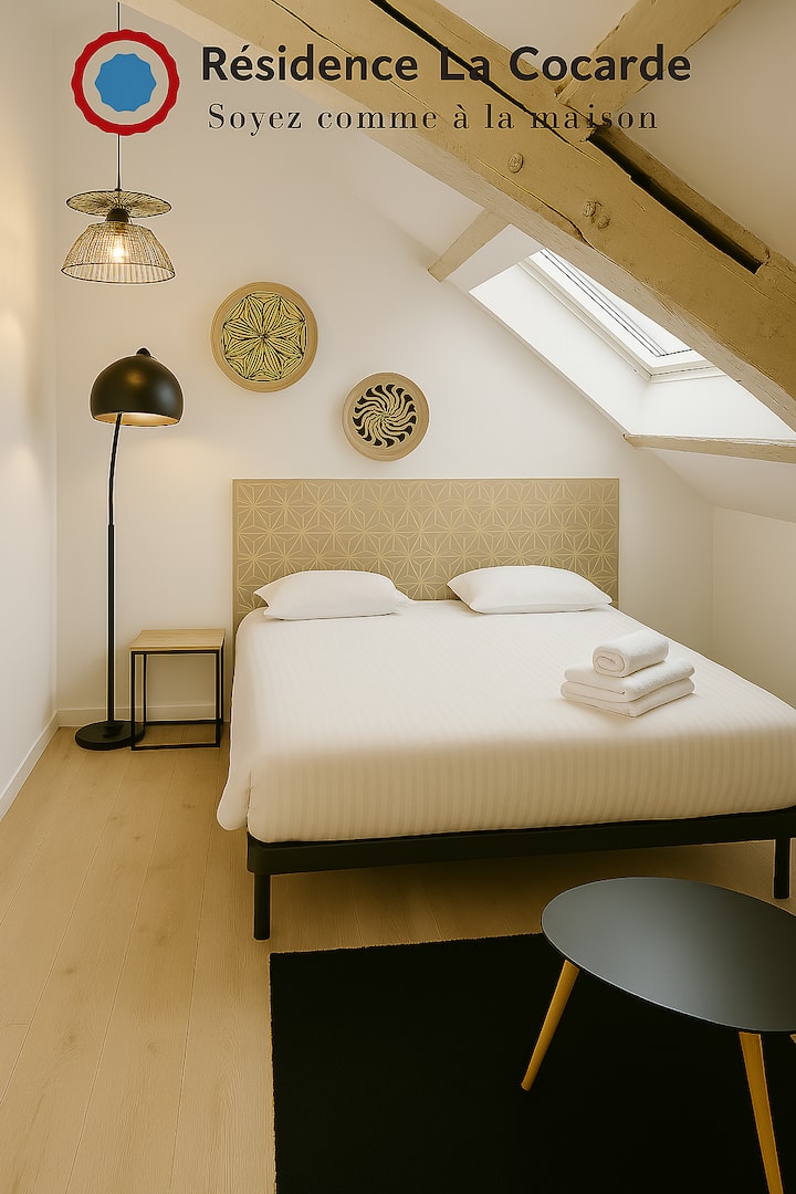 Residence La Cocarde, составена од 7 прекрасни апартмани и станови, во центарот на градот Бурж, удобна, квалитетна постелнина и чистење. Паркирајте лесно и бесплатно во близина, за целосно да уживате во престојот.