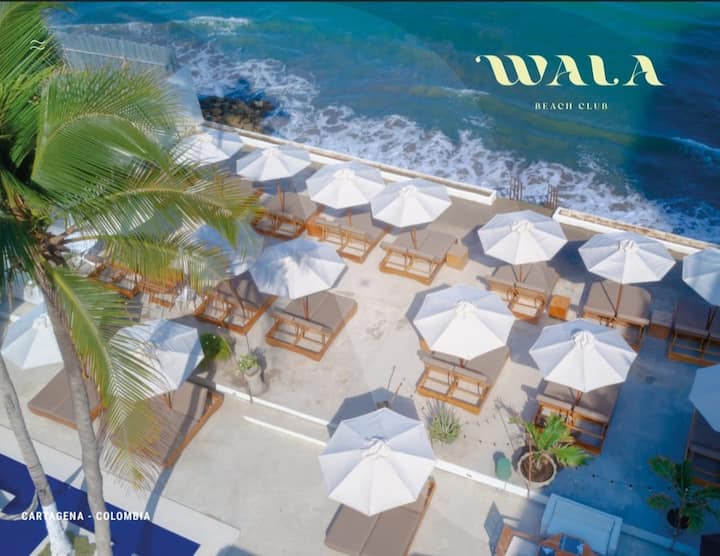 Хотел Вала клуб на плажа во Картагена, со поглед на морето.