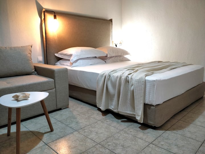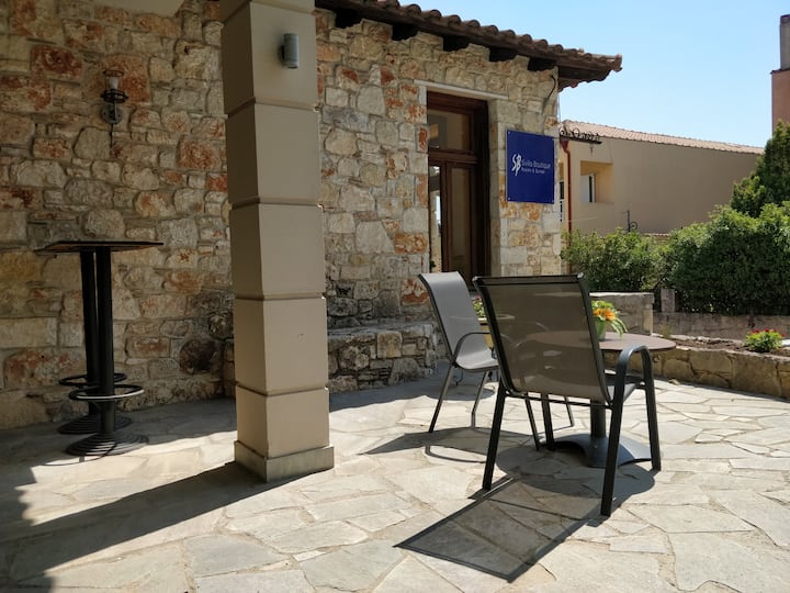 - Сместувања за изнајмување со простор за седење на отворено за одмор во Халкидик