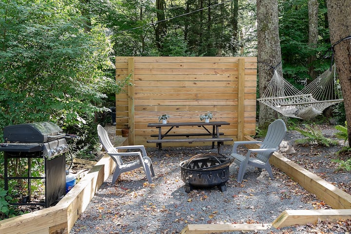 Удобна модерна колиба во Поконо | Вечери покрај огниште • Скара