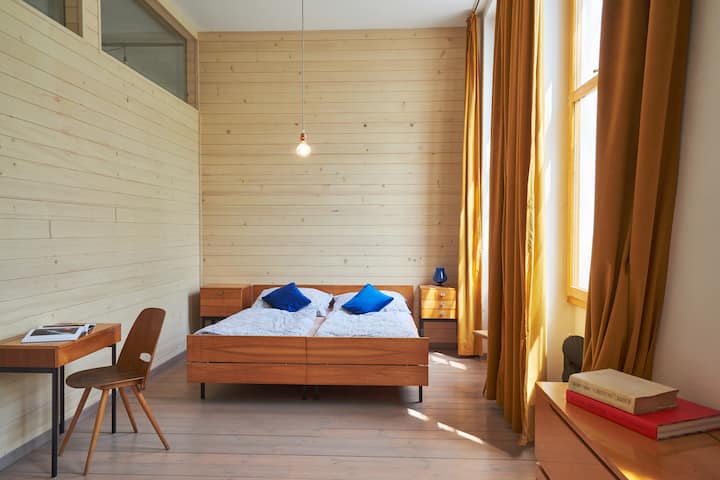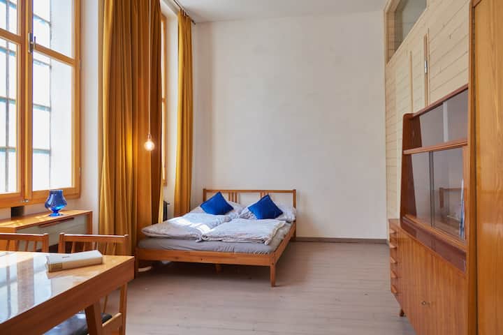 Во поранешната продавница има кафуле со тераса, книжарница, книжарница, книжарница, уредник, студио и два станови. Во срцето на Њу Перли, овој дел е квадратна зграда изградена во средината на Втората светска војна, изградена во 80-тите години на минатиот век во масивна структура со седум покриви, во која влегоа продажен простор, станбено поткровје и два складишта и бродски рампи. Кафулето нуди голем избор на регионални пијалаци и оброци подготвени од производство на земјоделци и земјоделци. Големата кујна е добро опремена и секогаш има свежа и здрава храна без користење на хемиски состојки и во тек.